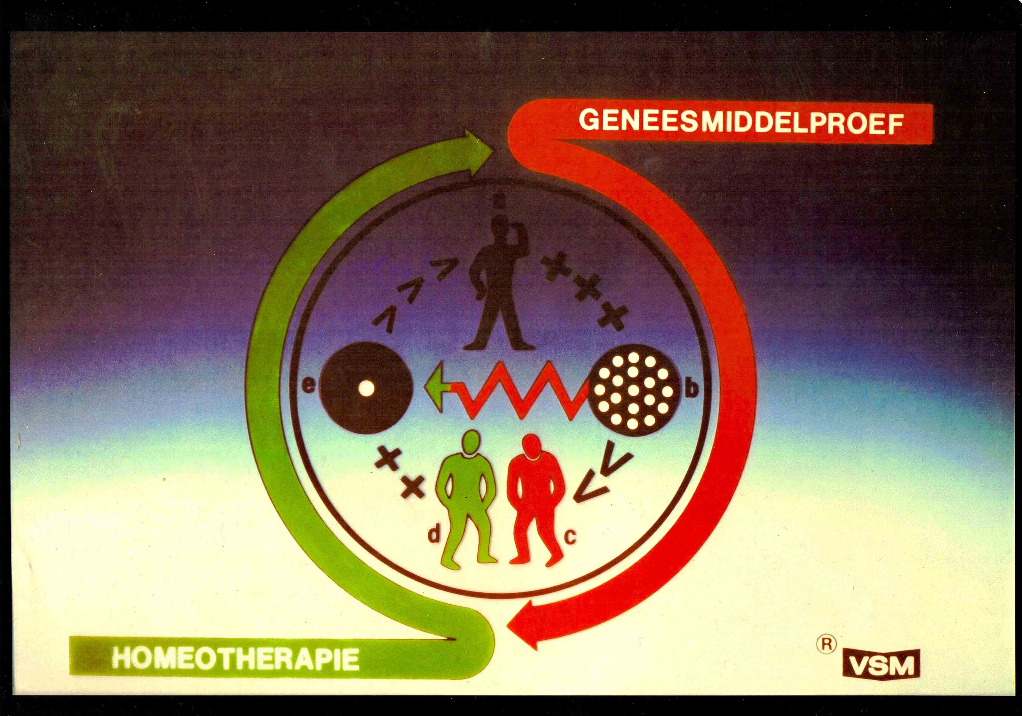 Bovenstaande kunstzinnige weergave van het similia beeld in de homeopathie hangt bij VSM Geneesmiddelen bv in de entree. Hij is gemaakt in 1981 door de kunstenares Mieke Oldenburg ter gelegenheid van de opening van het nieuwe gebouw in Alkmaar. Hieronder de oorspronkelijke stilistische weergave die uitleg geeft over de samenhang van de basis principes in de homeopathie. Het geeft mooi weer de centrale rol die het similia principe in de homeopathie speelt. We noemen het daarom het similia beeld.